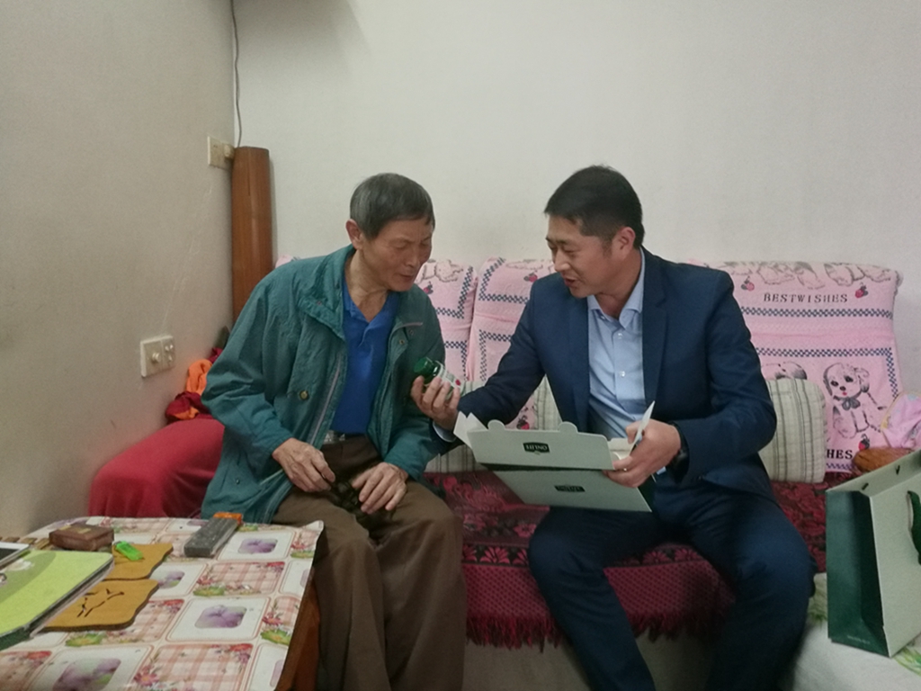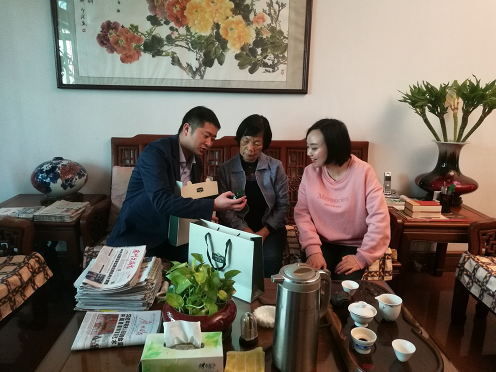 隨后,富諾健康總經(jīng)理助理程前鵬、海珠區(qū)民政科科長徐艷、海珠區(qū)江南大道南社區(qū)居委會主任麥巧云上門一起走訪了海珠區(qū)昌崗街道小區(qū)的困難家庭和老黨員們。富諾健康總經(jīng)理助理程前鵬更是與老人們拉起家常,詳細(xì)詢問了老人們的生活和身體情況,并囑咐他們要保重身體。