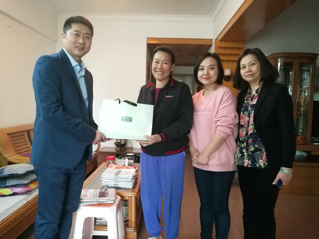 如果說能溫暖人身體的是火,那能溫暖人心的一定是愛。1月28日(正值小年),廣州富諾健康科技股份有限公司積極組織開展“凝聚愛心,傳遞溫暖”公益活動,富諾健康總經(jīng)理助理程前鵬、海珠區(qū)民政科科長徐艷、江南大道南社區(qū)居委會主任麥巧云領(lǐng)導(dǎo)一行走訪了海珠區(qū)昌崗街道慰問困難家庭和老黨員,為他們送上慰問品和節(jié)日的祝福。